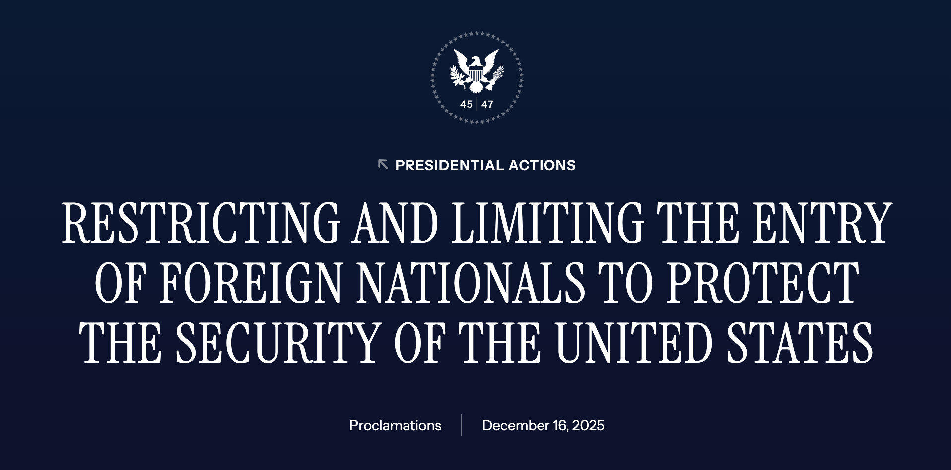- Family Reunification: The proclamation narrows previously broad exceptions for family-based immigrant visas. The administration stated that because these make up the majority of immigrant applications, they represent a significant "vector" for potential risk.